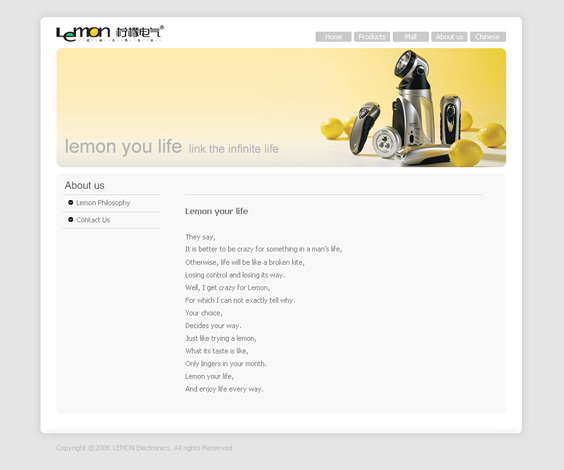 重新规划设计了柠檬电气网站,充分展示创意产品的特点,网站风格清新简约。Lemon你的生活- 享受生活不同角度的滋味。