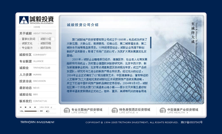 我们设计的第一个房地产项目网站,全国最大的SHOPPIN MALL,所以非常用心打造,全Flash动感页面最终赢得了客户的赞赏。